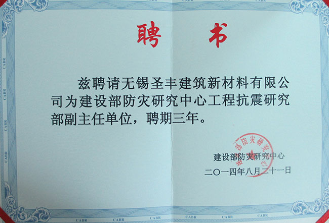 首页 > 企业荣誉 > 建设部防灾研究中心 聘书
