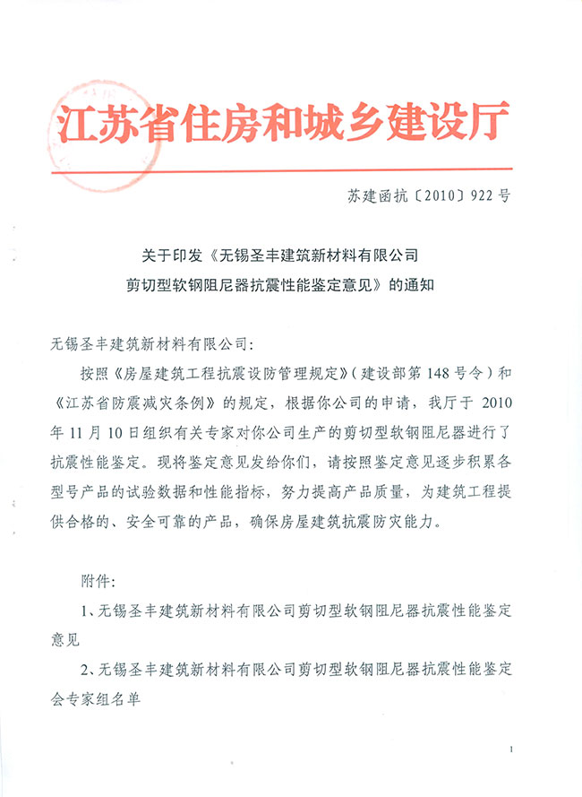 粘滞阻尼墙通过省住房和城乡建设厅鉴定